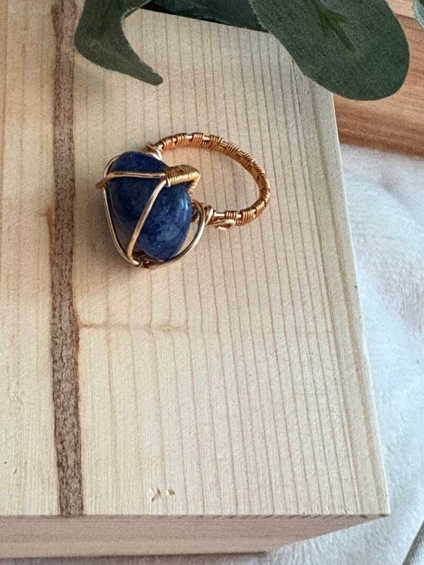 Handmade wire wrapped lapis lazuli ring gold size 9