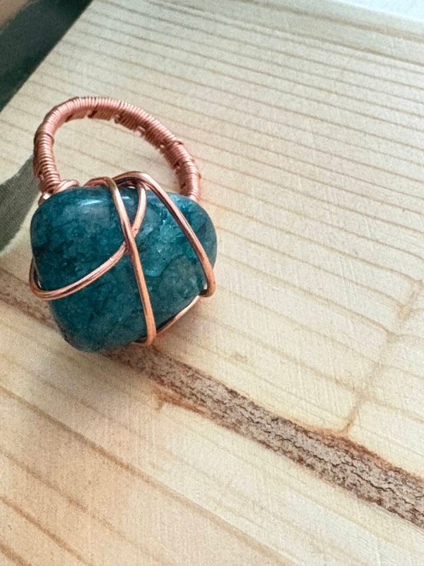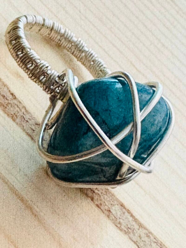 Discover balance and beauty with this handmade silver wire-wrapped green agate ring. Known for its grounding energy and calming vibes, green agate promotes emotional healing while adding a touch of natural elegance to your look.