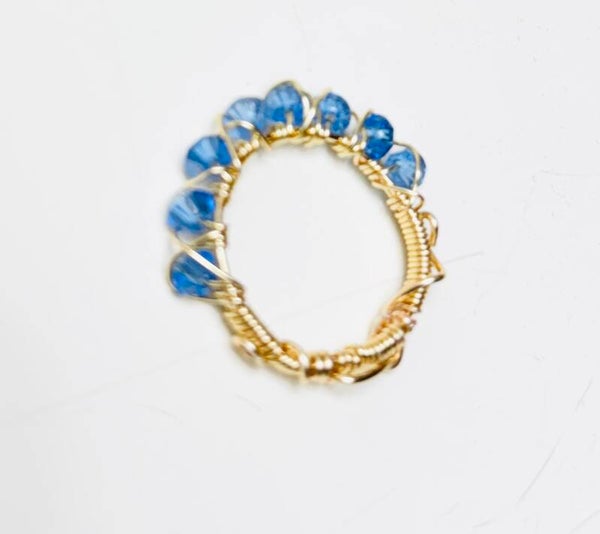 Handmade Gold Wire-Wrapped Blue Swarovski Crystal Ring