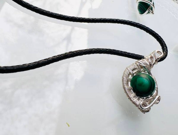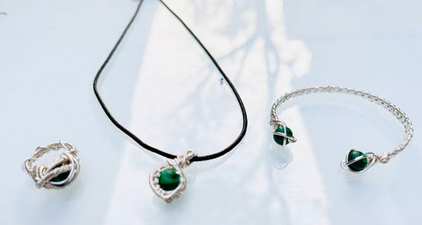 Silver wire wrapped malachite set